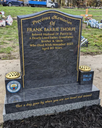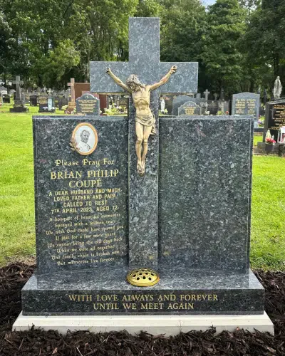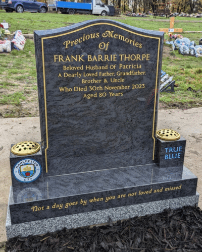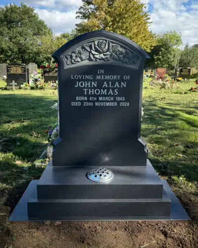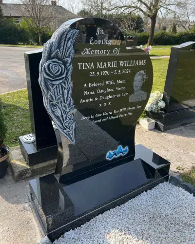 At our Manchester showroom and workshop, you can take your time browsing a wide selection of beautifully engraved memorials and designer headstones. Our friendly, knowledgeable staff are always on hand to answer any questions and guide you through the many options available. We’re proud to offer one of the largest displays of headstones and memorials in the North West of England.